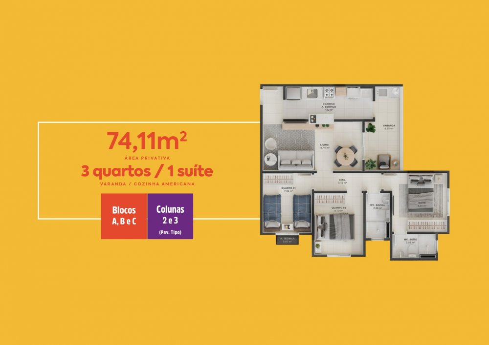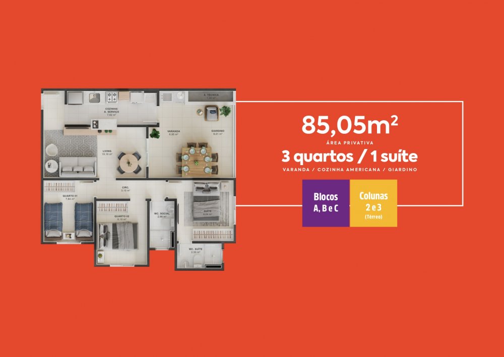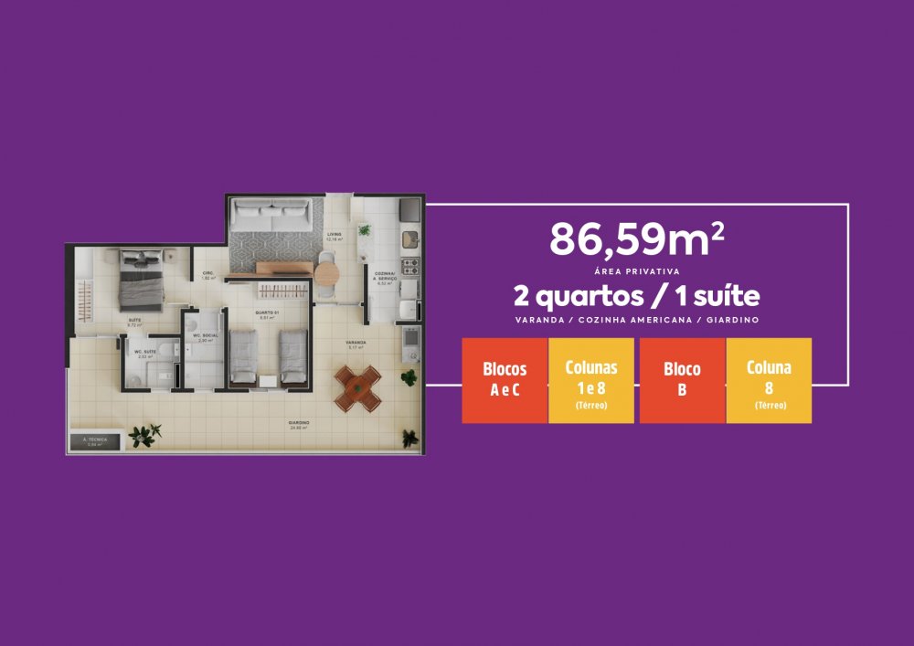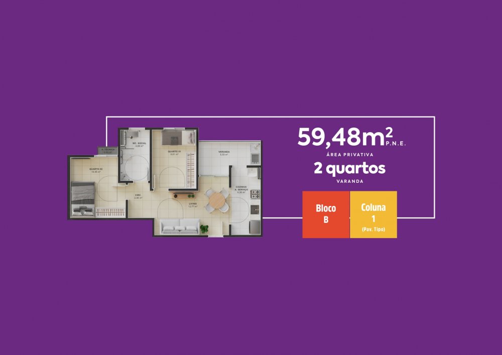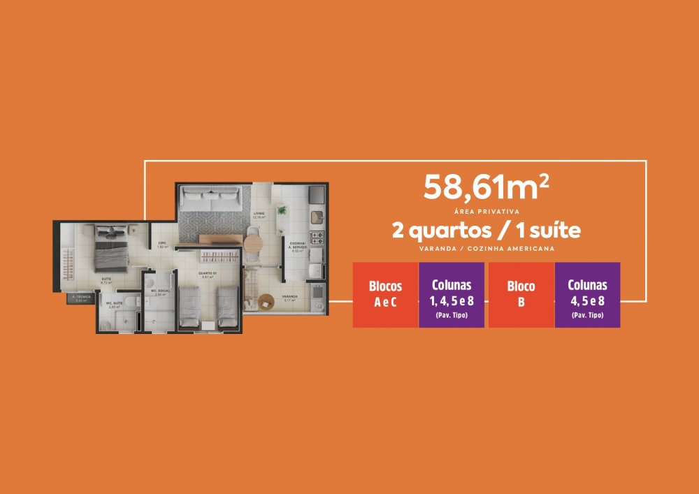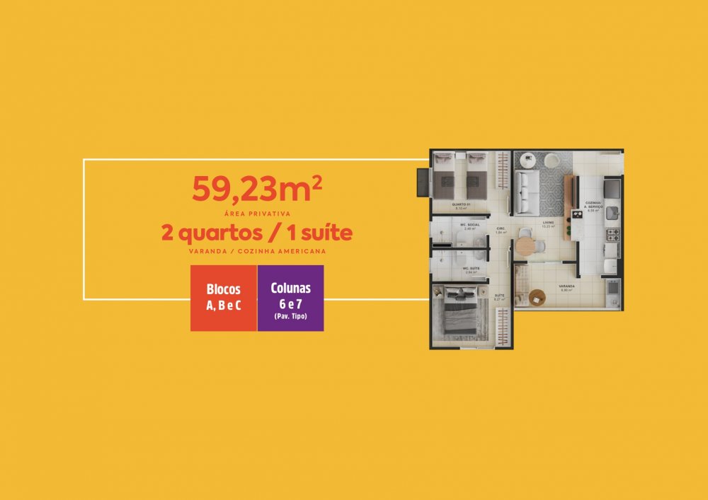 - Área Privativa: 59 m²