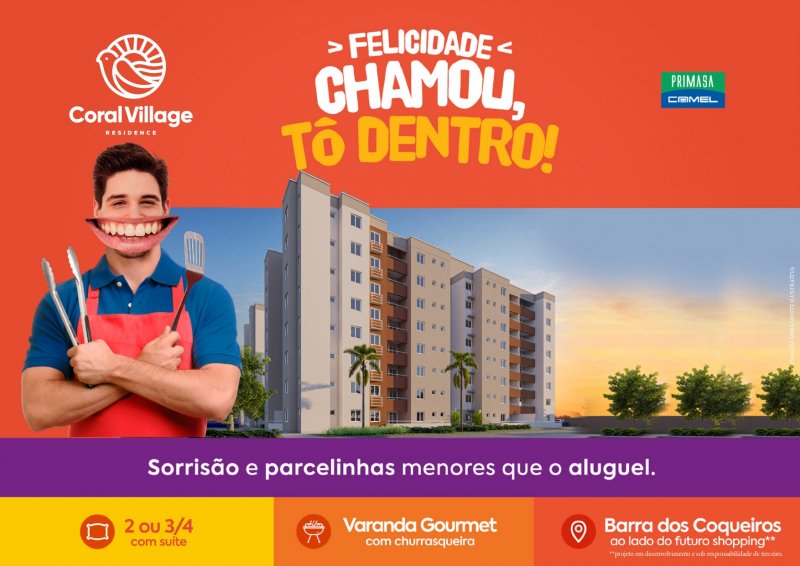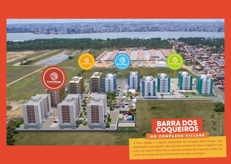 Quer morar num lugar perfeito para você, conheça o Coral Village Residence! Unidades com 2 e 3 quartos, com suíte e varanda gourmet com churrasqueira. Localizado no complexo Barra Village. Uma das áreas que mais cresce na cidade da Barra dos Coqueiros. Possibilidade de valorização e próximo de tudo: praia, academia, mercados, futuro shopping, entre outros. Consulte-nos e saiba mais! No mês de julho estamos com o Cartório e ITBI grátis!