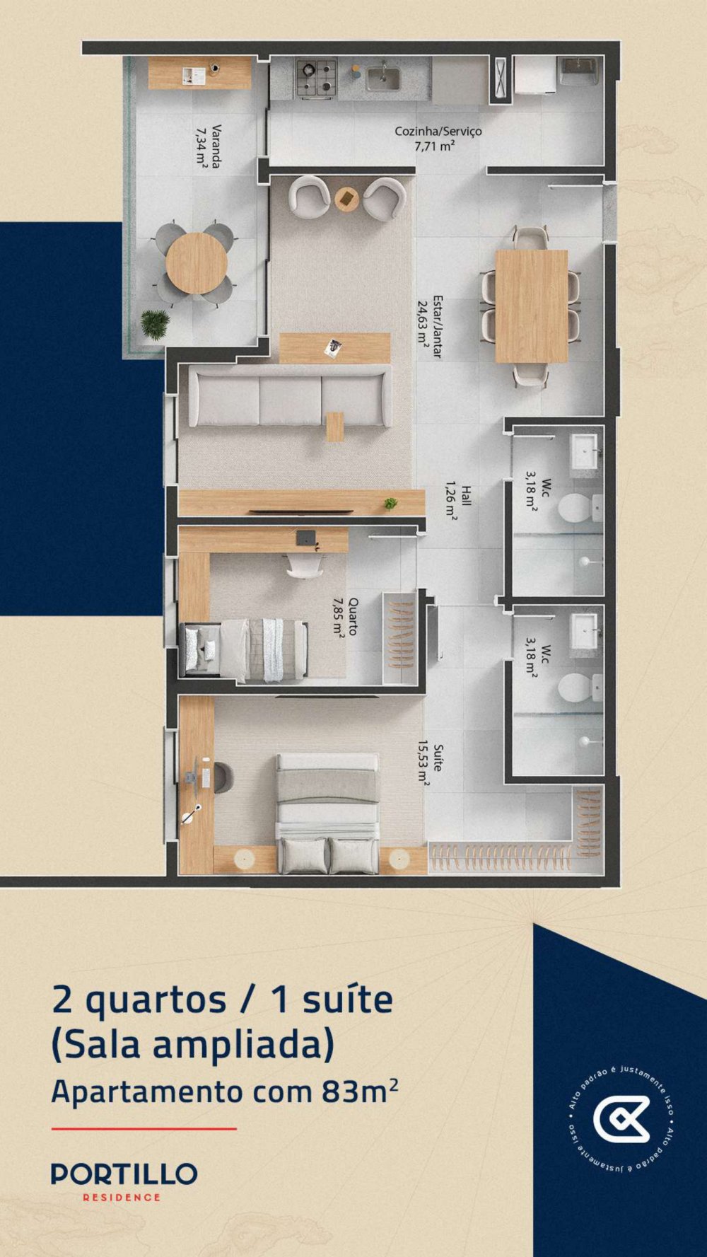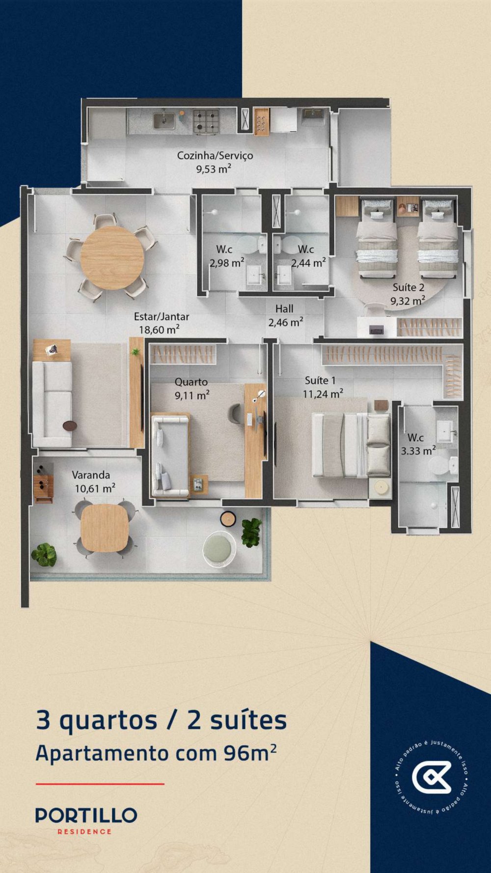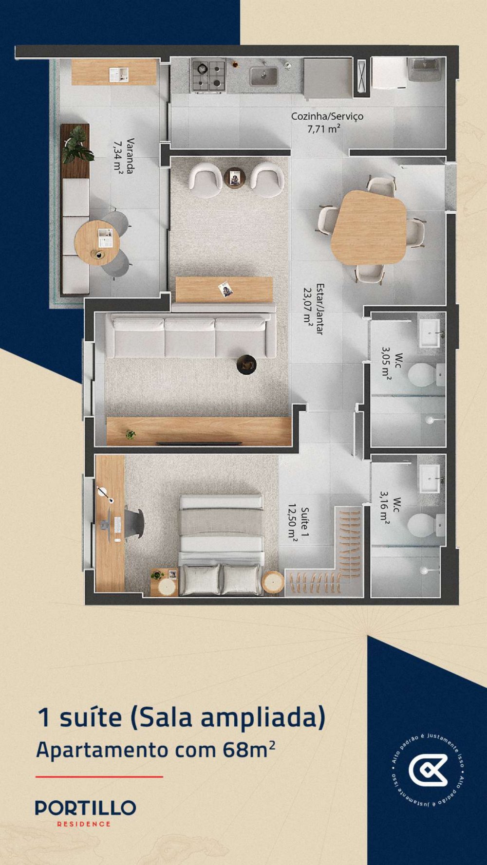 Portillo Residence, o primeiro lançamento de alto padrão da Constren no bairro Atalaia, projetado para quem busca qualidade de vida, conforto e elegância. Localizado em uma área de fácil acesso e tranquilidade, o Portillo une o estilo sofisticado ao melhor que Aracaju tem a oferecer. Plantas Inteligentes e Espaços Aconchegantes: Com opções de apartamentos de 68, 83, 96 e 99 m², cada detalhe foi cuidadosamente pensado para oferecer uma experiência única e completa. A Melhor Localização no Atalaia, o Portillo está a poucos passos da icônica Passarela do Caranguejo, um dos pontos turísticos mais vibrantes de Aracaju. Um convite para desfrutar da rica gastronomia, cultura e arquitetura local.