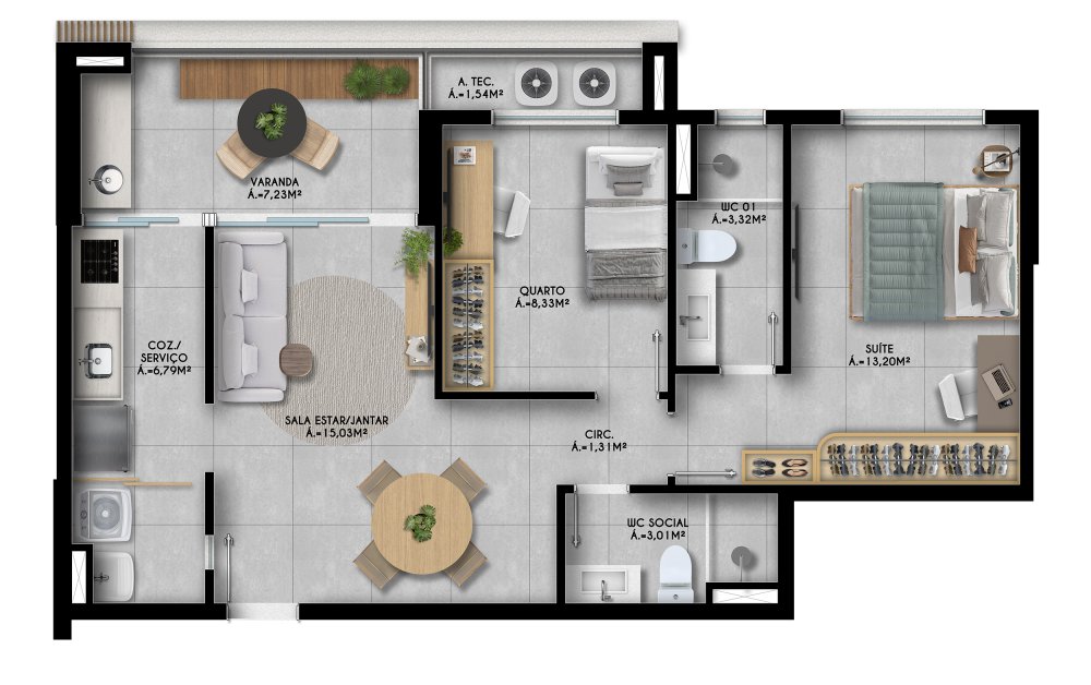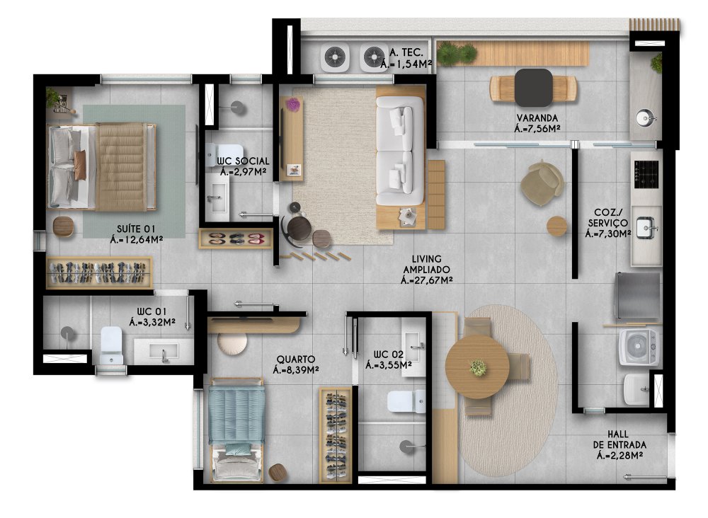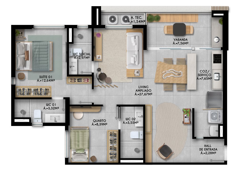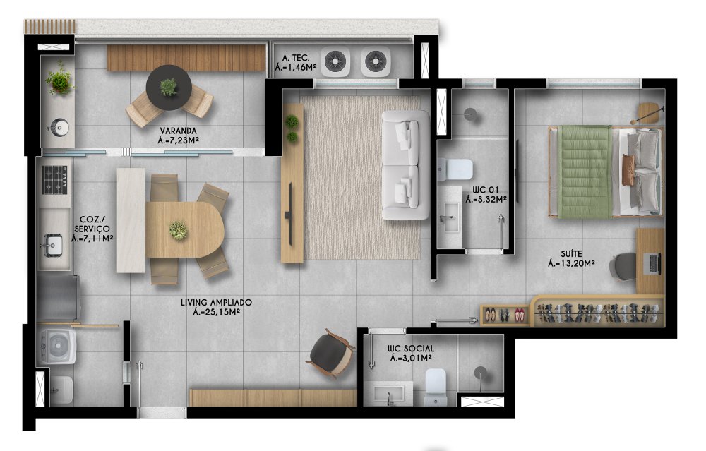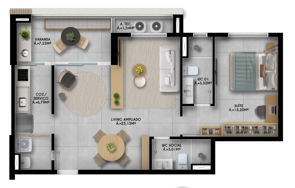 - Área Privativa: 37 m²