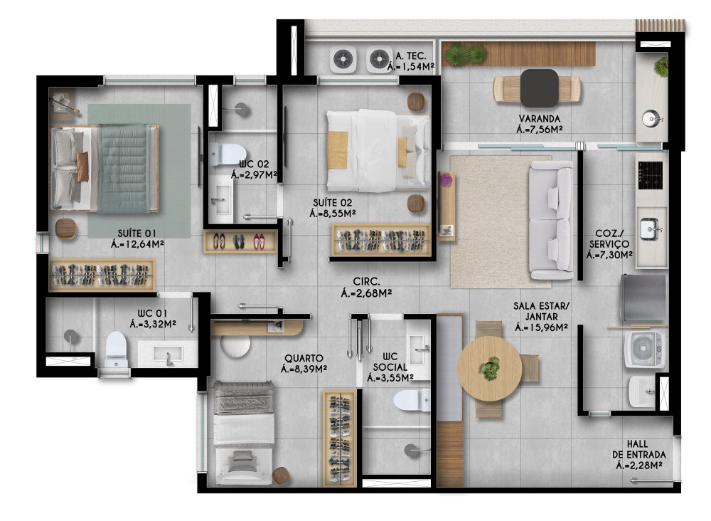 Com opções de 1, 2 e 3 quartos, todos com suíte, cada unidade foi cuidadosamente projetada para otimizar o espaço e garantir uma experiência única aos moradores. Mas o grande diferencial do Citta Jardins é o Rooftop 360º, que proporciona uma vista espetacular de toda a cidade de Aracaju, um verdadeiro convite para momentos de relaxamento e contemplação.