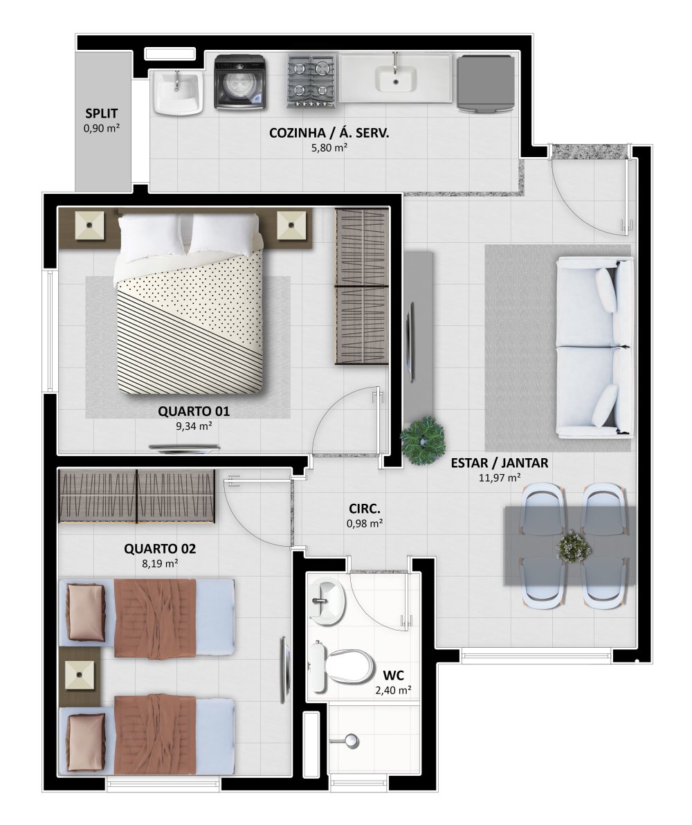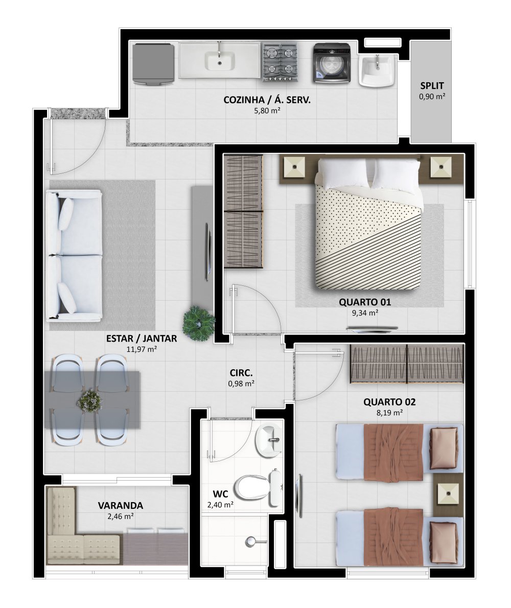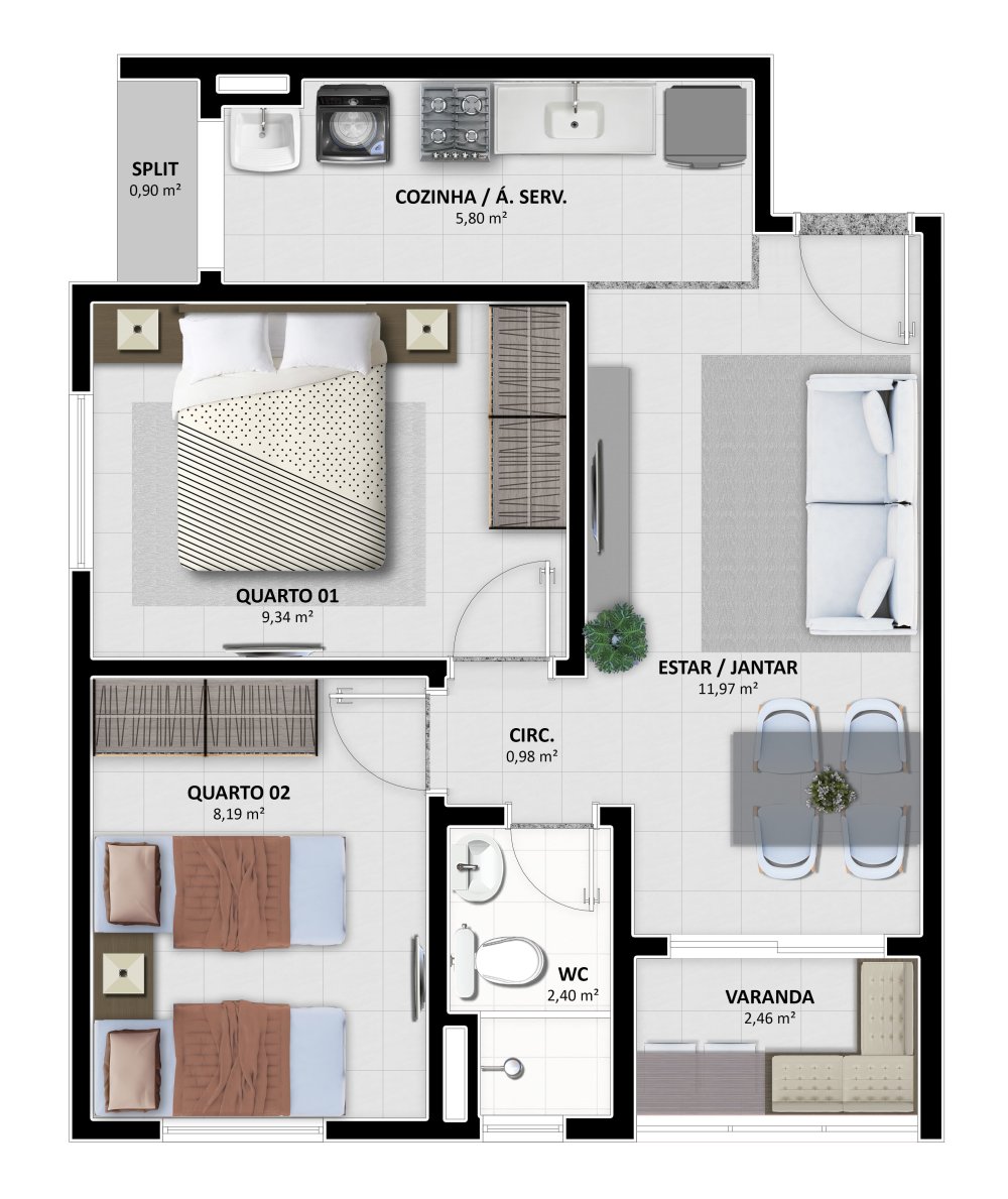 Apartamento em Venda com 2 dormitórios, 46 m²