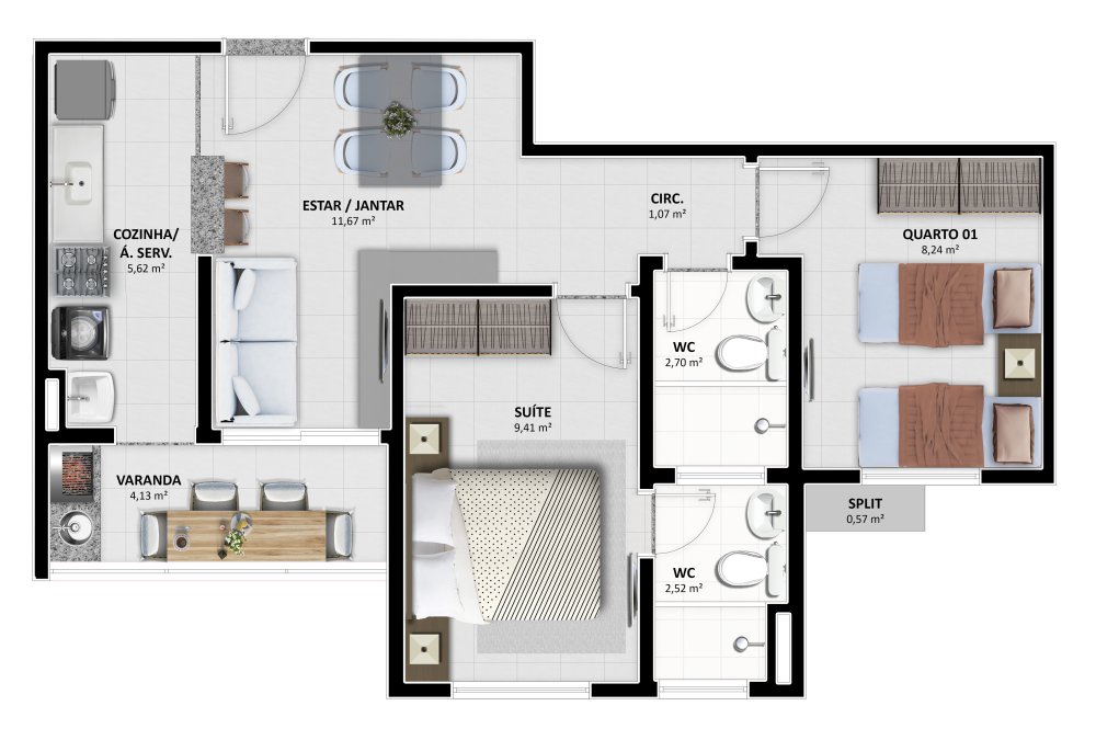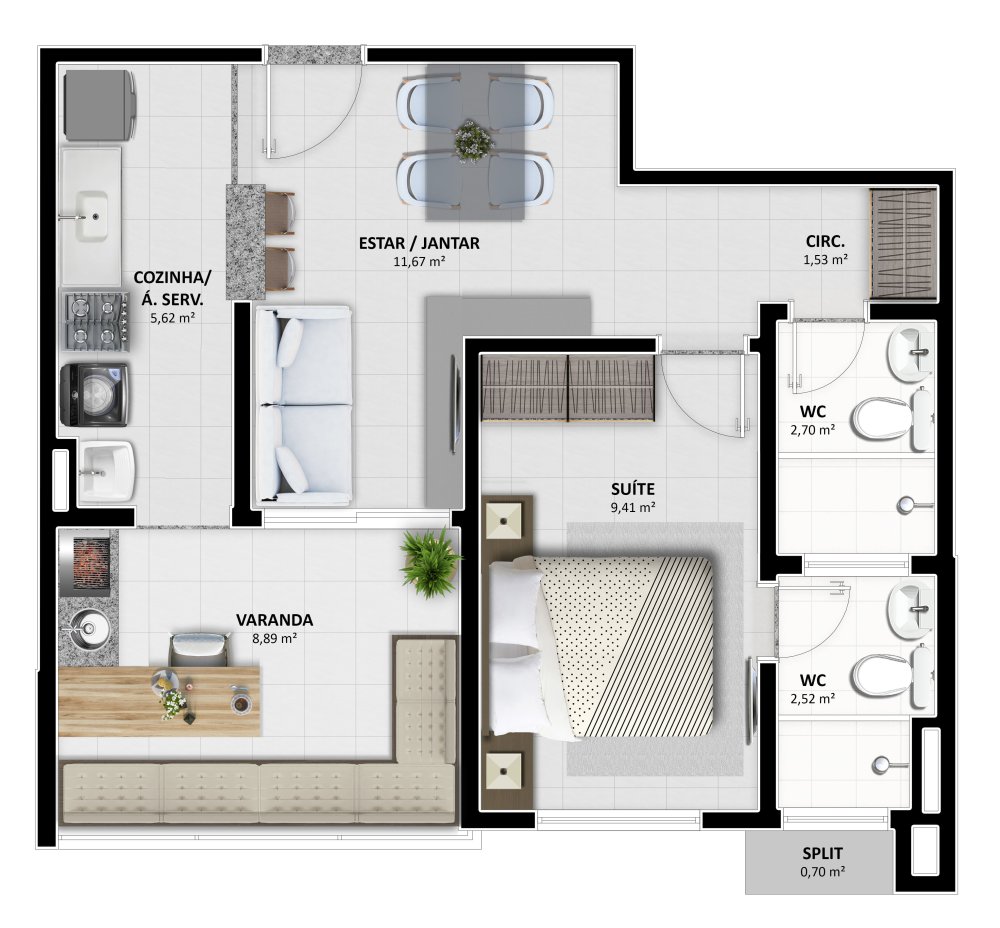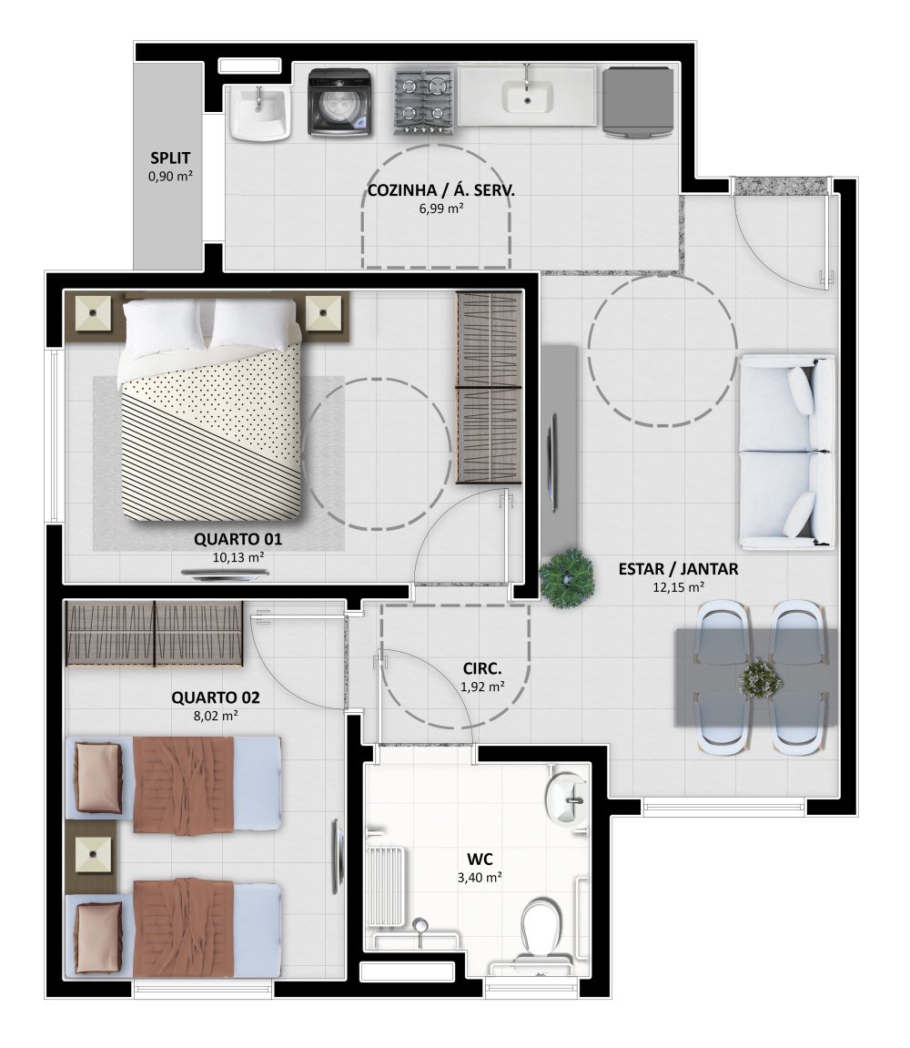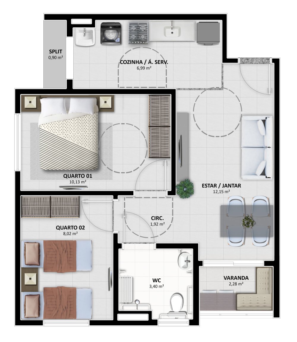 Apartamento em Venda com 2 dormitórios, 46 m²