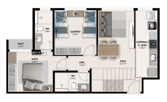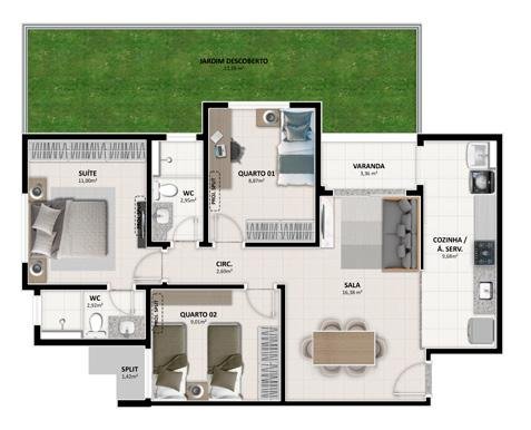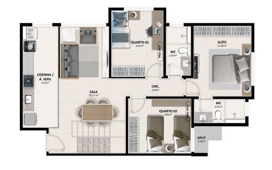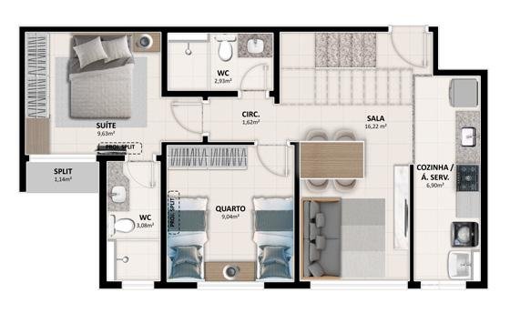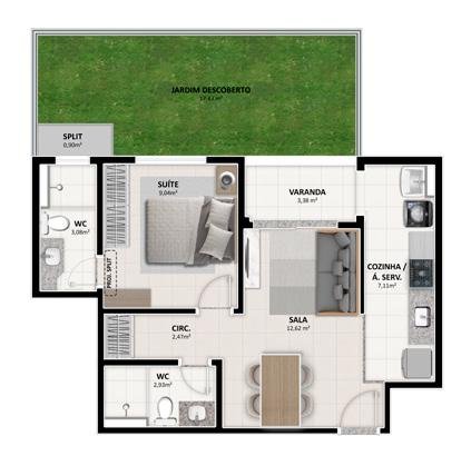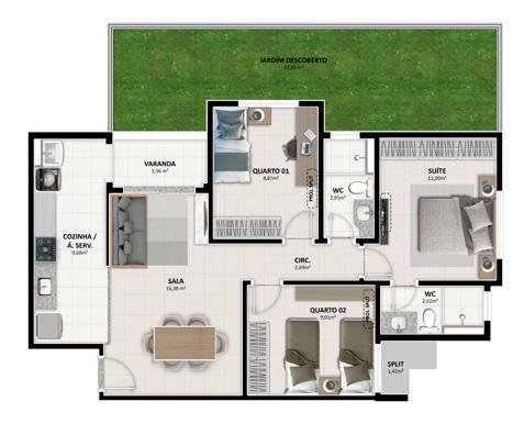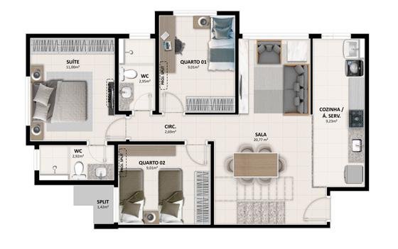 - Área Privativa: 60 m²