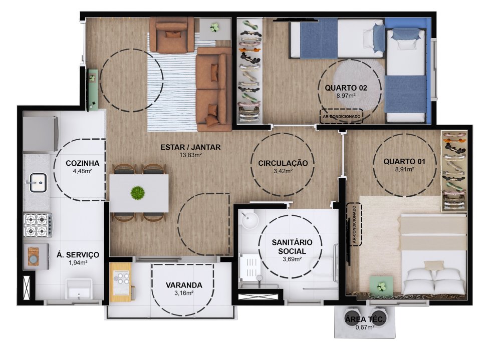 • Área Privativa: 54,52 m²