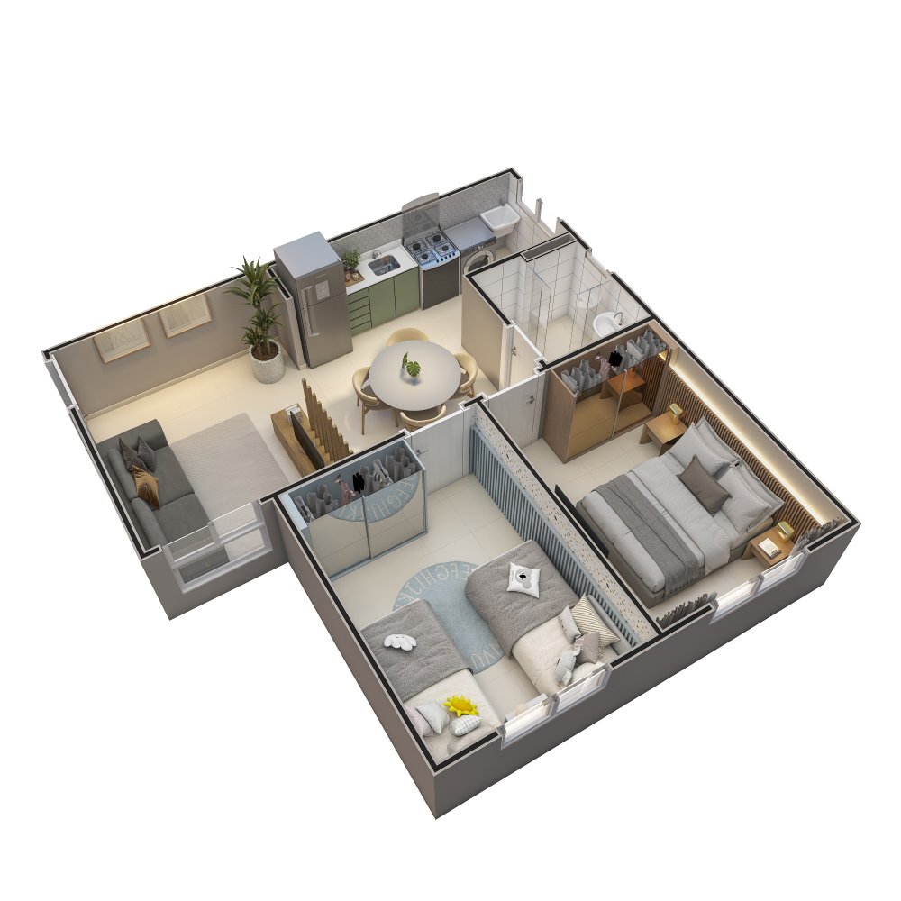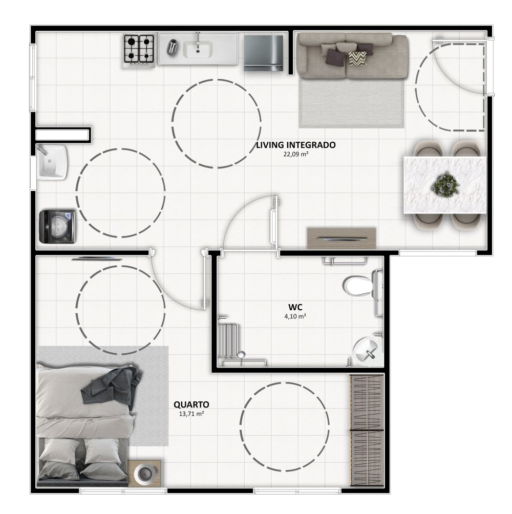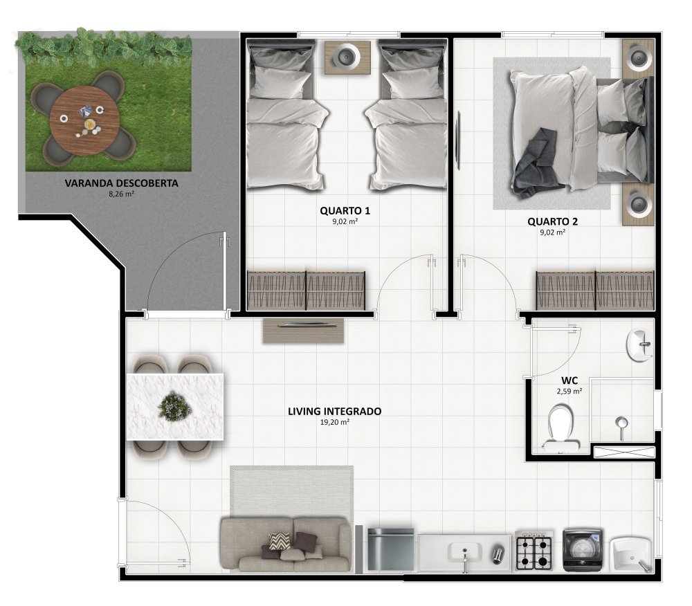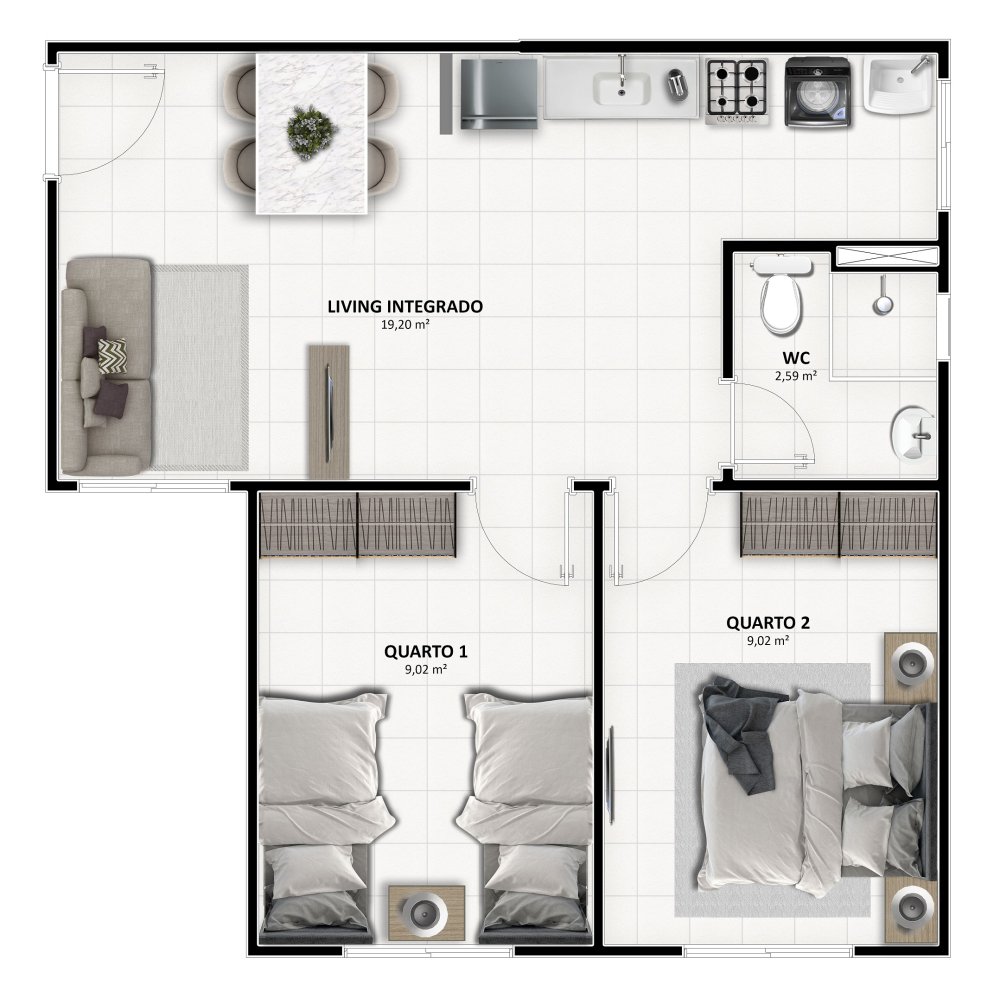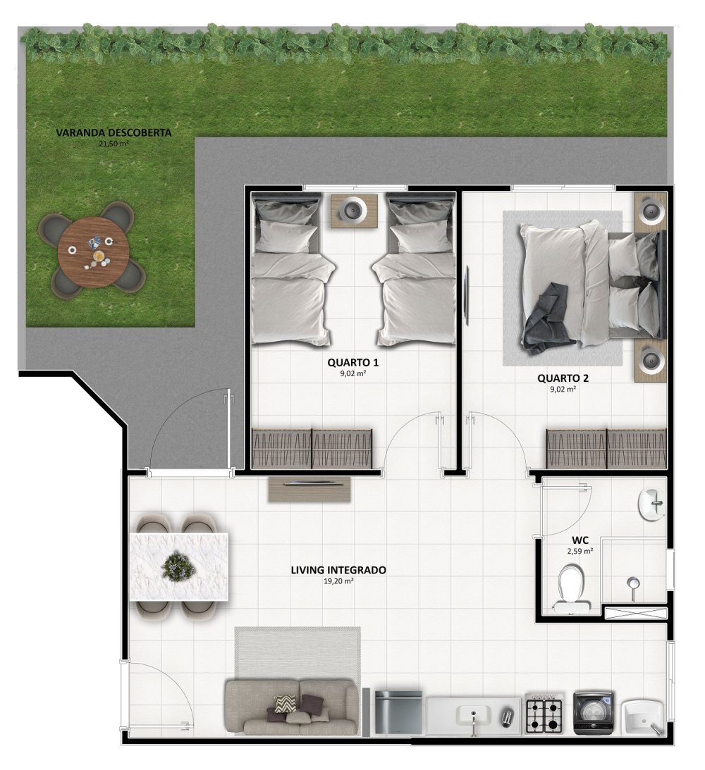 - Área Privativa: 43,69 m²