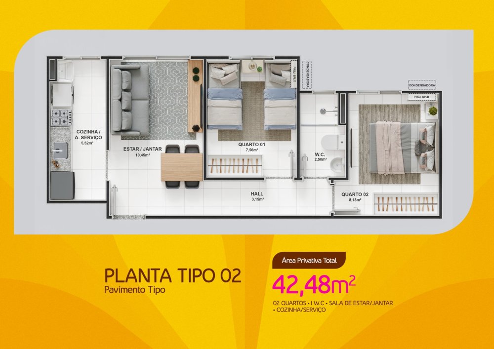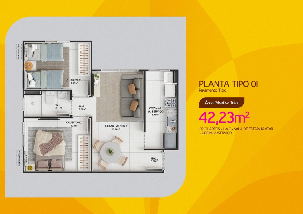 Apartamento em Venda com 2 dormitórios, 42,23 m²